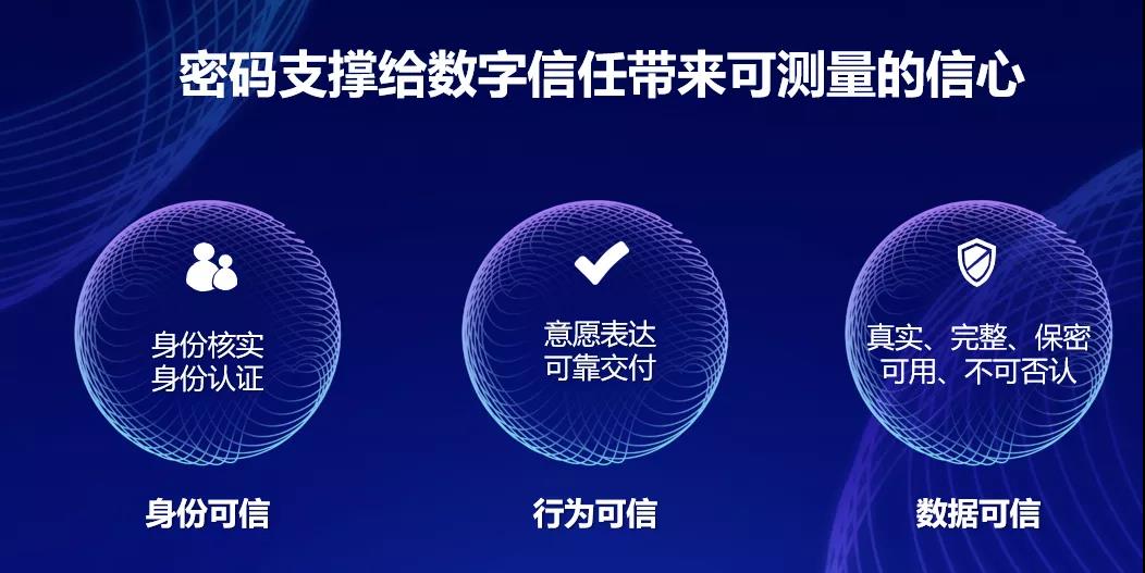 林雪焰认为,在后疫情时代,各行各业的数字化转型都按下了加速键,越来越多的数据被集成到业务中,传统的网络空间正逐渐成为一个超大规模的虚拟社会,从无序走向有序的呼声越来越迫切。数字认证发现,各行各业的价值潜力更多的是来自于数字信任的驱动,10%的信任提升能够给用户带来36%的经济效益提升。“在网络空间建立和传递’数字信任’,是数字经济繁荣和社会稳定的关键性环节。”他强调,在数字信任的庞大体系中,密码支撑给数字信任带来可测量的信心,其中最重要的价值就是确保身份可信、行为可信、数据可信。