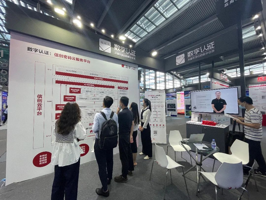 在展示大厅,数字认证信创密码云服务平台解决方案得到众多电子信息领域专业人士的关注与认可。
