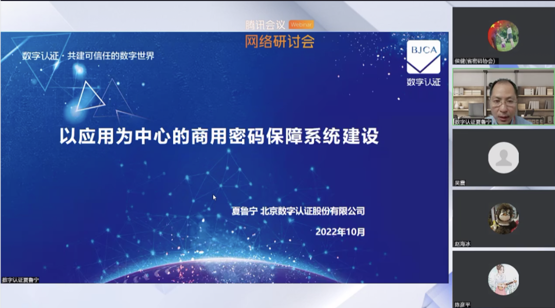 会上,北京数字认证股份有限公司(简称:数字认证)研究院院长夏鲁宁针对如何建设以应用为中心的商用密码保障系统发表观点。