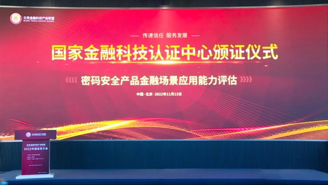 11月13日,“传递信任•服务发展”国家金融科技认证中心(简称:国金认证)颁证仪式成功举办。国家市场监管总局认证监管司司长刘卫军出席,金电集团副总经理、国金认证执行董事潘润红对金融科技、密码等产品认证与能力评估结果进行了宣布。
