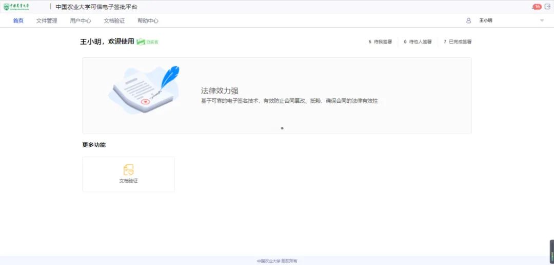 近日,中国农业大学可信电子签批平台正式上线,平台的上线可为学校实现电子文件的在线签署,同时满足“一次登录、多项办理”,解决了学校一网通办的“最后一公里”问题,支撑学校建成更安全、更高效、更便捷的智慧校园管理服务新模式。