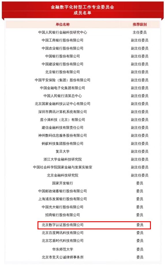 数字认证加入金融数字化转型工作专委会,构筑金融数字信任环境