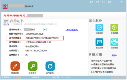 2) 打开BJCA证书助手,可以查看证书有效期。