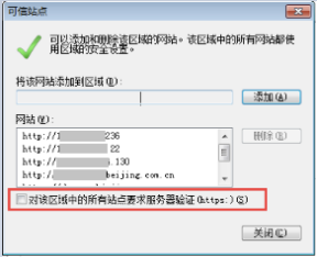 5)取消"对该区域中的所有站点要求服务器验证(https) "前的勾选,如下图:
